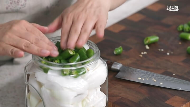 양파장아찌에 단맛이 도는 파프리카나 피망을 넣어도 좋아요. 그리고 청양고추도 같이 넣어주는 것이 좋은데요, 청양고추가 들어가면 양파의 지린 맛을 없애주어요.