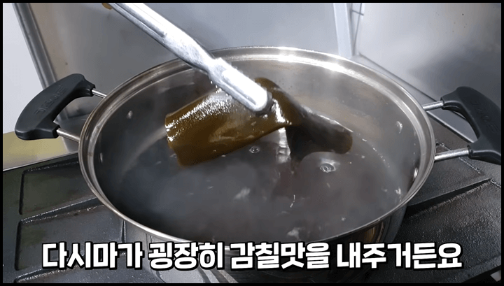 1) 끓인 간장물에서 다시마를 건져냅니다. 다시마를 넣어주면 감칠맛이 좋아집니다.