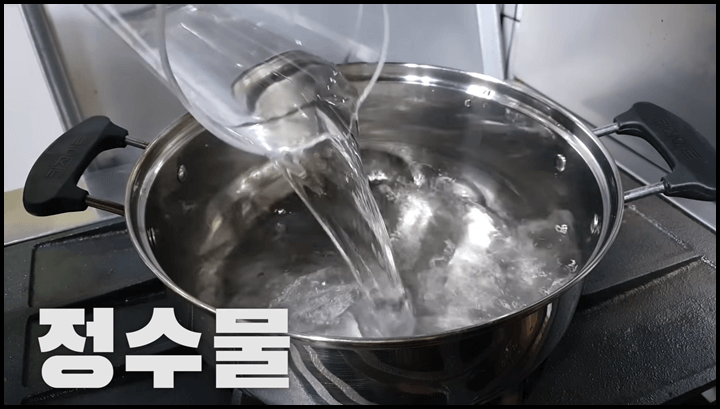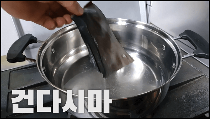1) 물 600ml를 냄비에 붓고, 중불로 켜 줍니다.