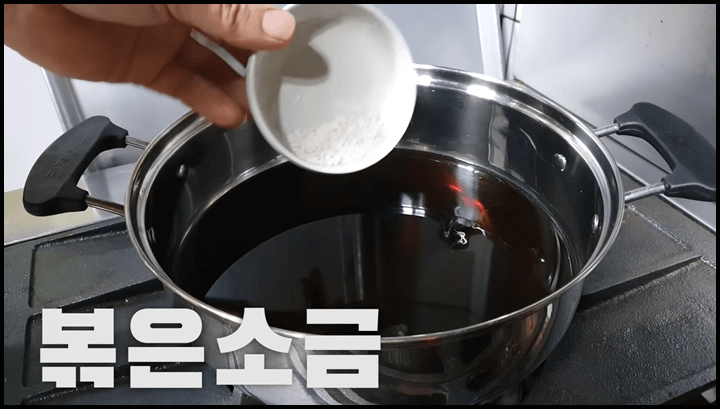 4) 미림 반컵, 볶은 소금 1/4스푼을 넣어주고