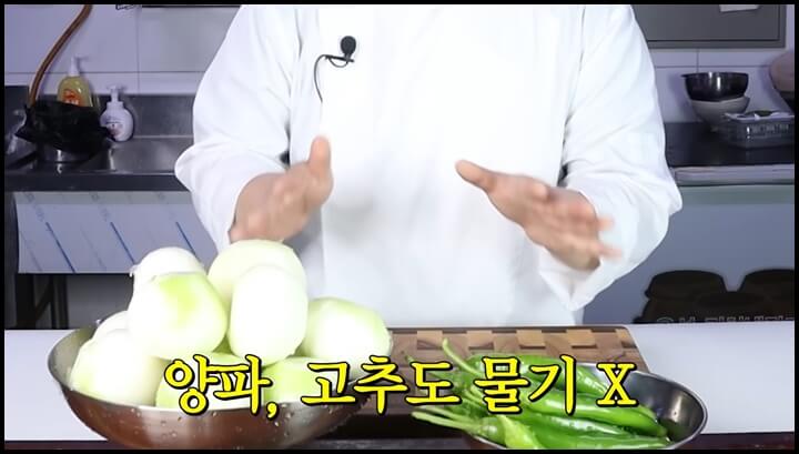 즉 양파장아지를 만드는 데 필요한 모든 식재료와 식기에 물기가 전혀 없어야 합니다. 그러면 장아찌를 만들고 나서 더 오래 두고 먹을 수 있습니다.