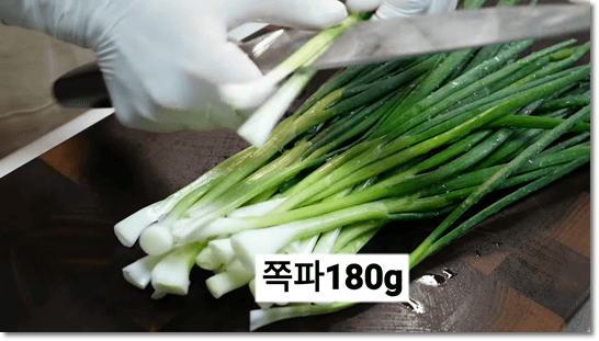 고명으로 함께 넣을 채소를 썰어줍니다. 양파 1/2개는 얇게 채 썰어주고, 쪽파는 머리가 굵은 것은 칼집을 내어 3~4cm 길이로 썰어줍니다.