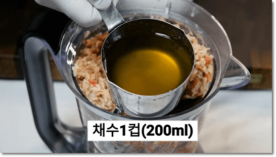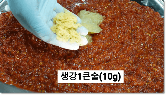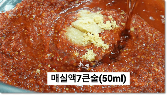 이제 양념을 만들어 봅시다. 믹서기에 갈았던 양념을 모두 붓고, 마늘 3큰술, 생강 1큰술, 채수 1컵, 매실액 7큰술을 넣어줍니다. 단맛이 너무 강하면 시원한 맛이 나지 않기 때문에 양념과 조화를 이룰 수 있도록 단맛을 조절해서 넣어줍니다. 양념의 간을 봐서 싱거우면 천일염 1큰술 정도 넣어서 최종 간을 맞춰줍니다.