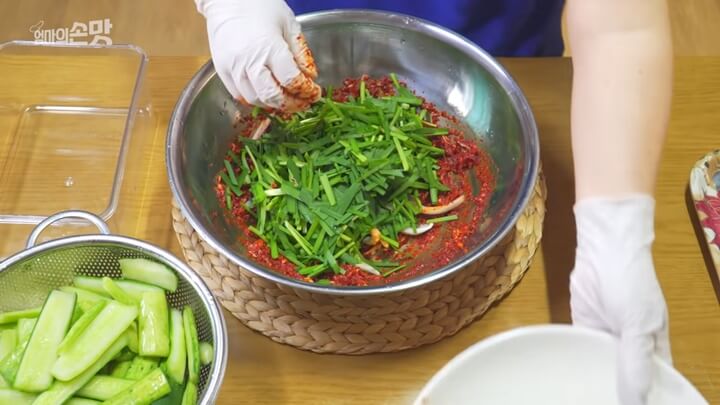 7. 오이김치 맛있게 담그는법, 무르지 않게 담그는방법 - 양념에 버무리기