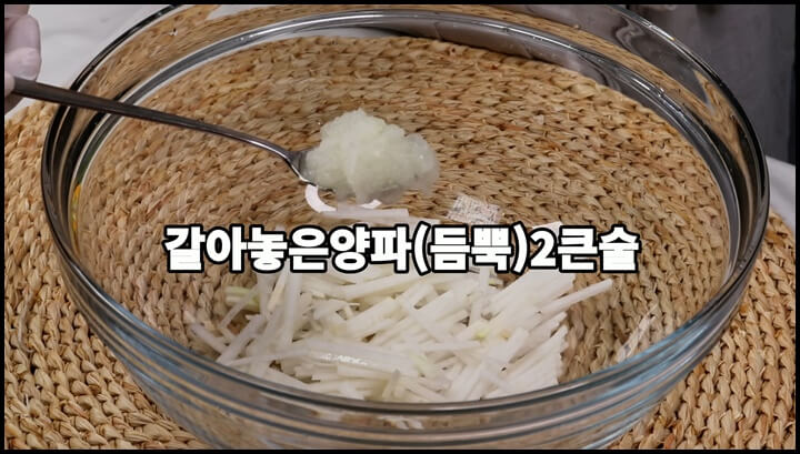 4) 양파는 갈아서 듬뿍 2큰술을 준비합니다. 물생기는 것을 최소화하기 위해 양파는 갈아줍니다.