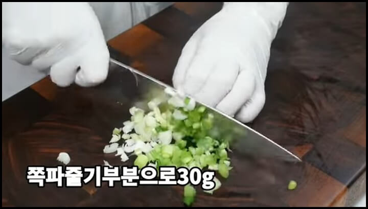 2) 쪽파는 하얀 줄기 부분으로 30g을 쫑쫑 썰어줍니다.