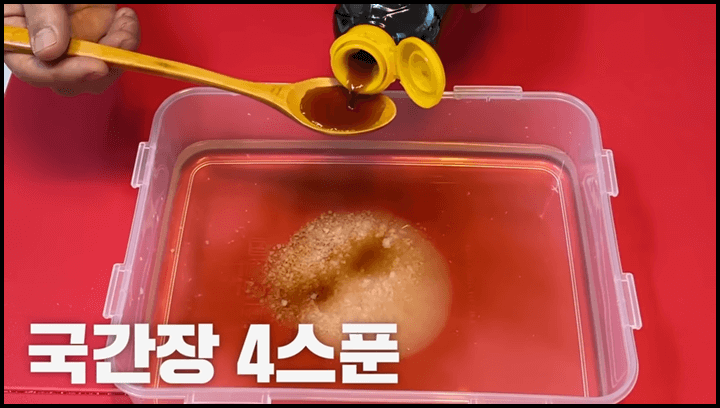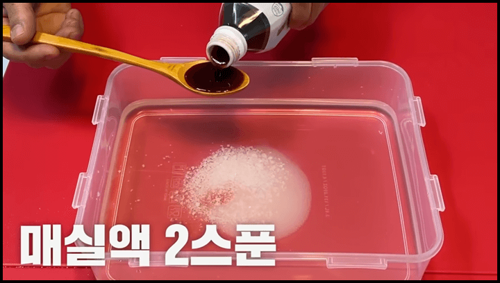 3) 매실액 2스푼, 국간장 4스푼을 넣어줍니다.