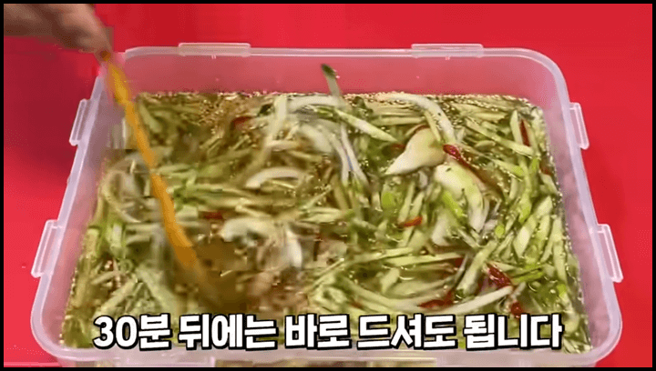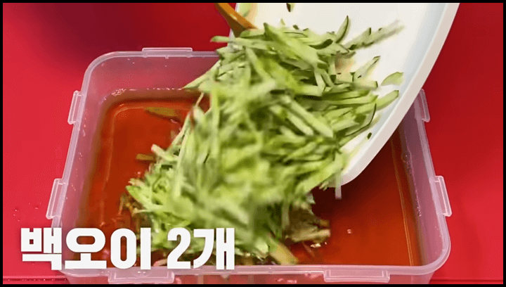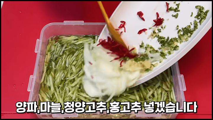 1) 썰어둔 오이를 모두 넣어줍니다.