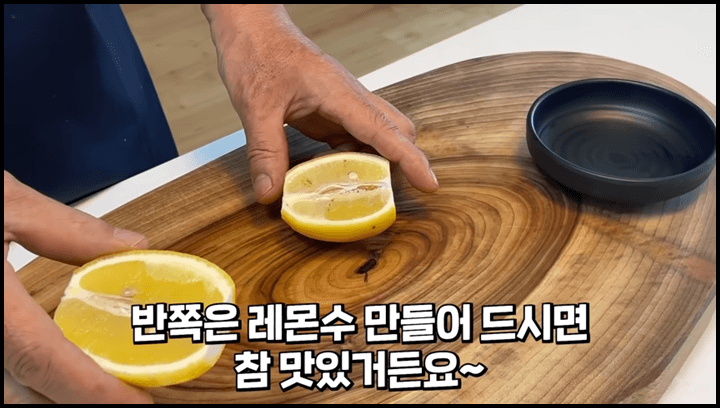 6) 레몬 /12개는 즙을 짜서 준비합니다. 레몬즙 1스푼 반 정도 나옵니다. 즙 짜고 남은 것은 전자렌지에 넣고 2분 30초 정도 돌리면 냄새가 싹 사라지니 활용해 보세요.