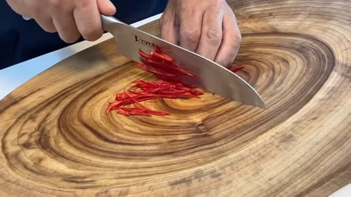 양파 1/2개도 가늘게 채 썰어줍니다. 청양고추 1개 잘게 다져주고, 홍고추는 고명으로 사용할 거라 반으로 갈라 씨를 제거해주고 가늘게 채 썰어줍니다.