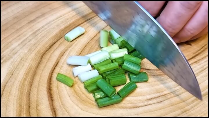 1) 쪽파는 1cm 정도의 길이로 썰어줍니다.
