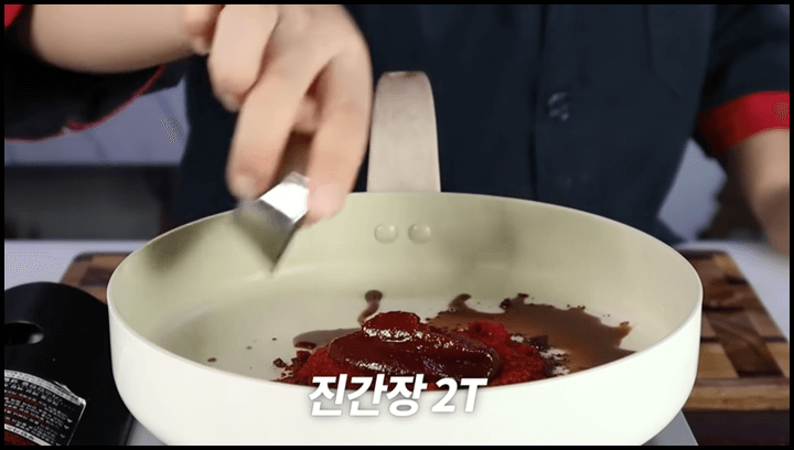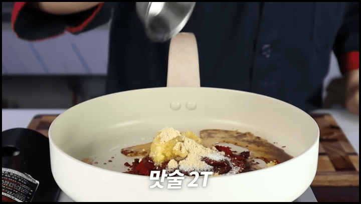 5) 맛술 2큰술을 넣고 약불에서 한번 끓여줍니다. 이렇게 끓여주면 양념장에 불맛도 입혀지고 색도 더 이쁘게 나옵니다.