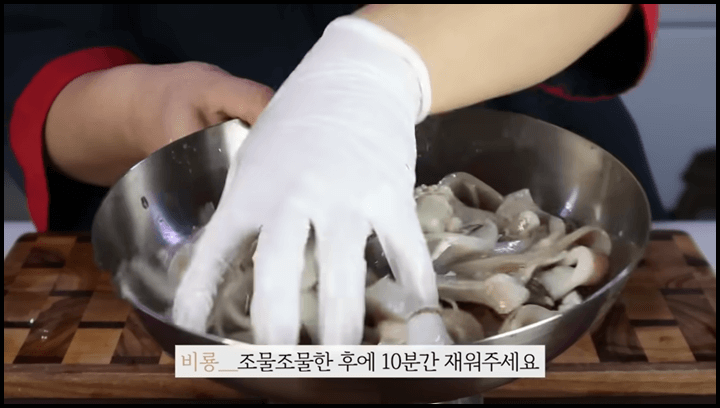 2) 손으로 조무조물한 후에 10분간 재워줍니다.