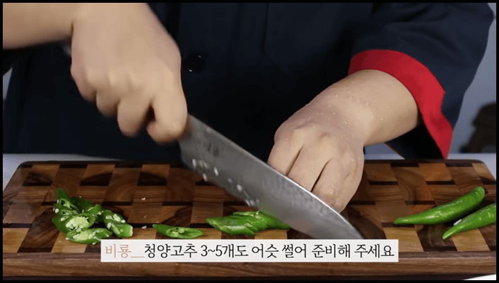 3) 청양고추 3~5개는 어슷 썰어줍니다.