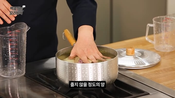 불을 켜고 끓여주는데, 끓어오르기 시작하면 그때부터 30분을 끓여주면 됩니다. 물이 보글보글 올라올 때까지 끓여주고, 끓어오르면 불을 중불로 줄여줍니다. 그런 다음 뚜껑을 덮고 30분 이상 끓여줍니다.