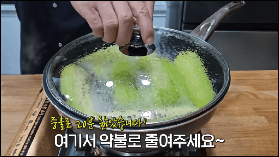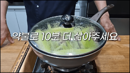 10분을 약불에서 더 삶은 후 불을 끄고 3분 정도 뜸을 들여줍니다. 그러면 단맛이 배어들어서 훨씬 더 맛있어집니다.