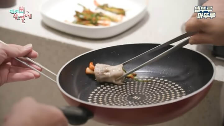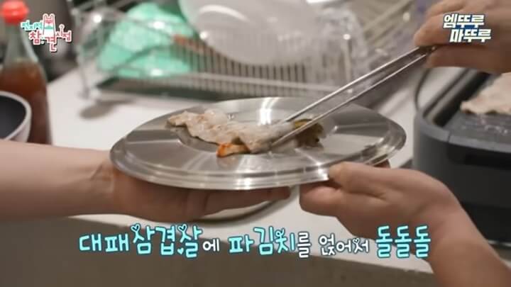 대패삼겹살을 구워서 파김치 얹고 돌돌 말아서 먹는데 아주 맛있어 보입니다!! 청양 고춧가루를 사용해서 매콤하니 아주 맛있게 만들어졌고, 파김치는 알싸한 맛이 있기 때문에 마늘은 따로 넣지 않아도 됩니다.