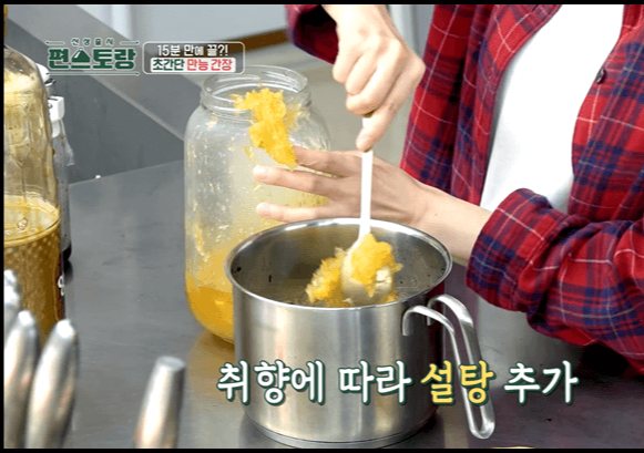 3) 유자청을 1컵 가득 넣어줍니다. 단맛을 더 원한다면 설탕을 추가해도 됩니다.