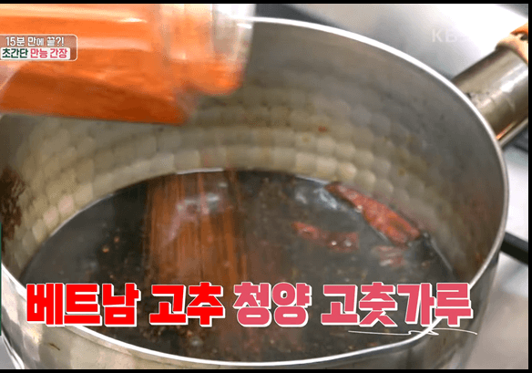 2) 베트남 고추 10개, 청양고춧가루 1큰술을 넣고