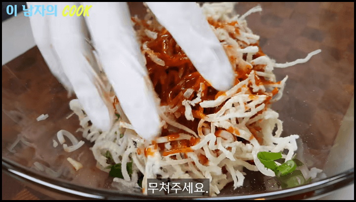 4) 손으로 조물조물 잘 무쳐줍니다.