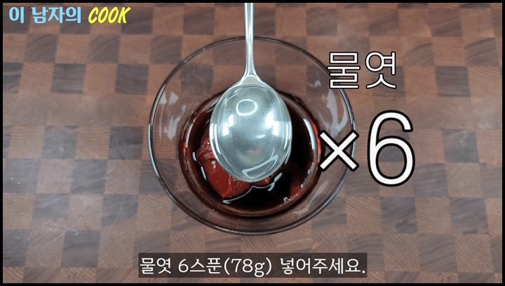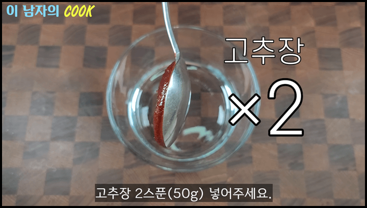 1) 고추장 2스푼을 넣어줍니다. 고추장은 특유의 칼칼함이 감칠맛을 더 올려줍니다.