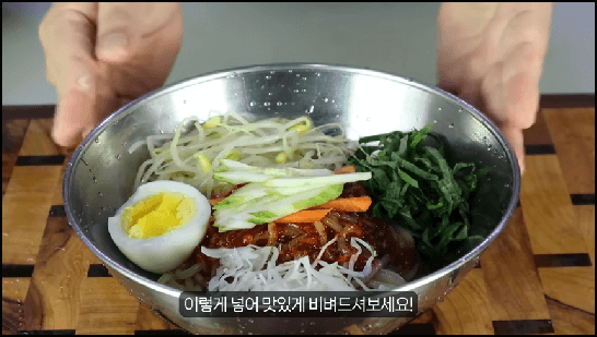 쫄면 완성이고요, 양념장에 골고루 잘 비벼서 먹으면 됩니다.