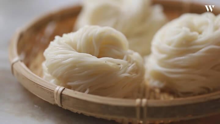 삶은 소면은 찬물에 바락바락 헹궈주어요. 물기를 뺀 후 소량씩 돌돌 감아서 담아둡니다.