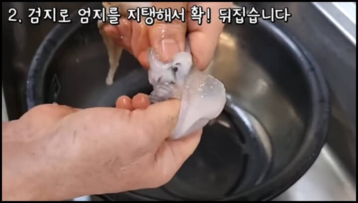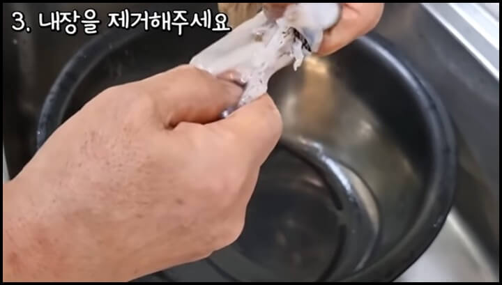 3) 뒤집은 다음 속에 있는 내장을 제거해 줍니다.