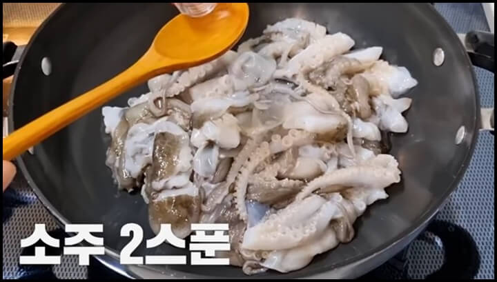 2. 쭈꾸미 찜하기 1분 30초 - 소주 2스푼 사용