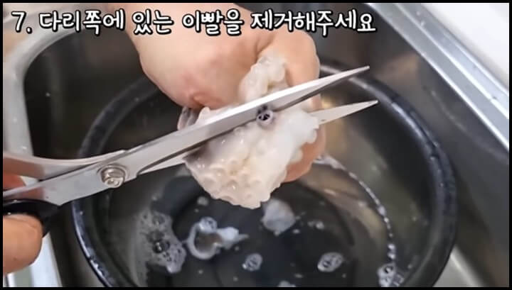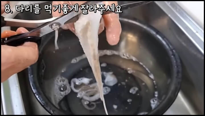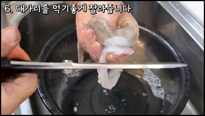 깨끗이 씻은 쭈꾸미를 손질하는데