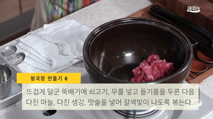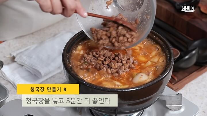 [출처 : 유튜브 쿡피아 청국장 맛있게 끓이는 방법]