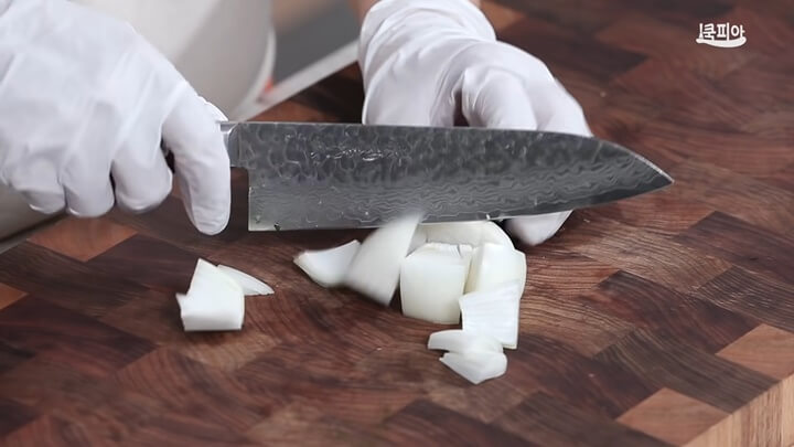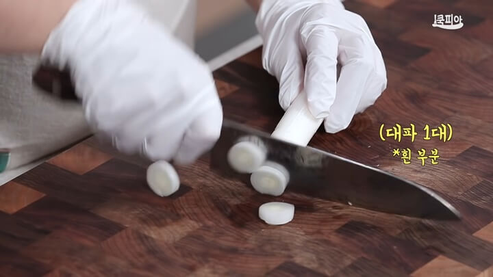 양파도 무 크기와 비슷하게 썰어주고, 대파 1대는 흰부분을 사용하면 되고 송송 썰어서 준비합니다.