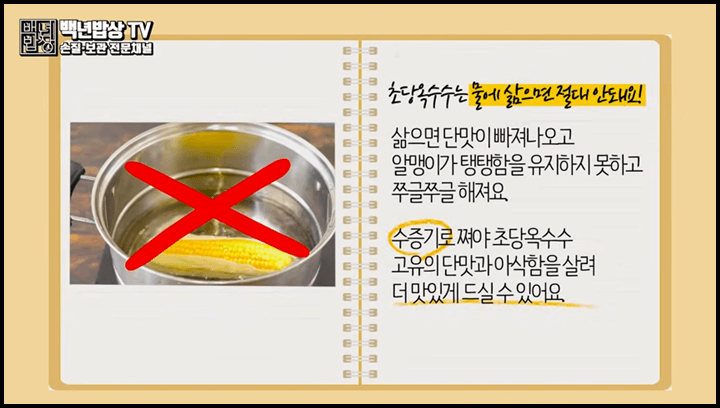 [출처 : 유튜브 백년밥상TV, 초당 옥수수 먹는 방법, 초당옥수수 찌는법, 보관법]