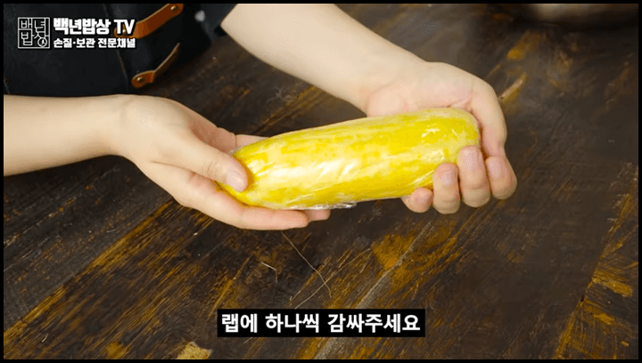 ● 옥수수를 찜기에 찐 후 어느 정도 식힌 후 랩에 하나씩 감싸줍니다.