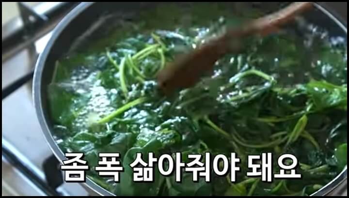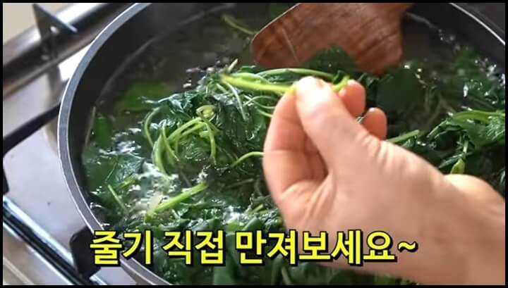 3분 정도 푹 삶았더니 줄기를 만졌을 때 푹 으깨지네요.