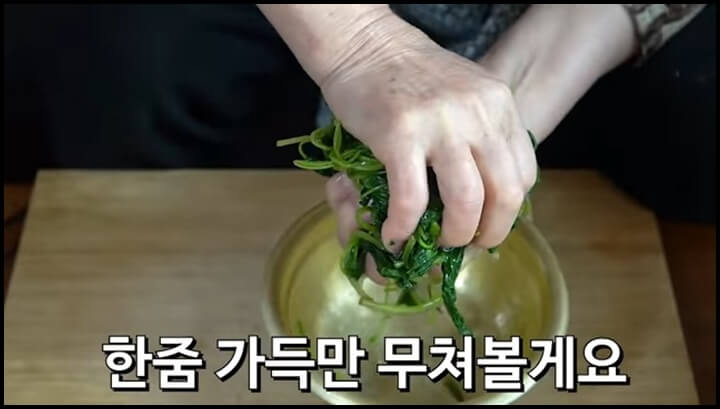 [출처 : 유튜브 윤이련의 50년 요리비결, 취나물 무침, 취나물 무침 만드는 법]