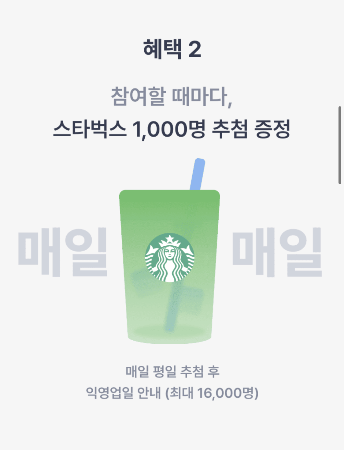 두번째 혜택은 참여자 중 1,000명을 추첨하여 스타벅스 쿠폰을 지급합니다.