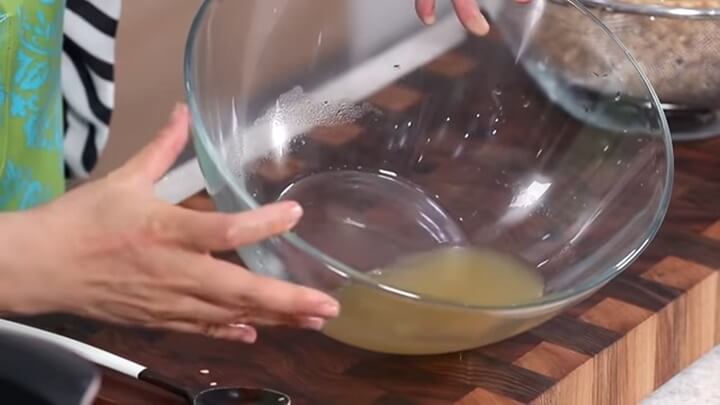 그리고 체에 밭친 콩물을 그대로 두고 콩을 얼른 찬물에 2번 정도 씻어주세요. 콩 껍질은 따로 벗길 필요 없고, 자연스럽게 벗겨져 나온 것들만 제거해 주면 돼요. 콩 껍질에도 영양분이 있으니 그대로 사용해요.