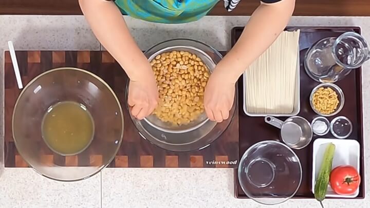 콩국수 만드는 방법, 콩국수 콩삶기-면 담고 콩물 붓기
