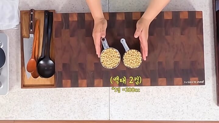 백태 2컵을 준비하는데요, 콩을 불리지 않고 생콩을 바로 사용해요. 이것이 바로 이보은 요리연구가님의 비법이라고 하는데요, 아주 궁금하시죠? 계속 따라가 볼게요~