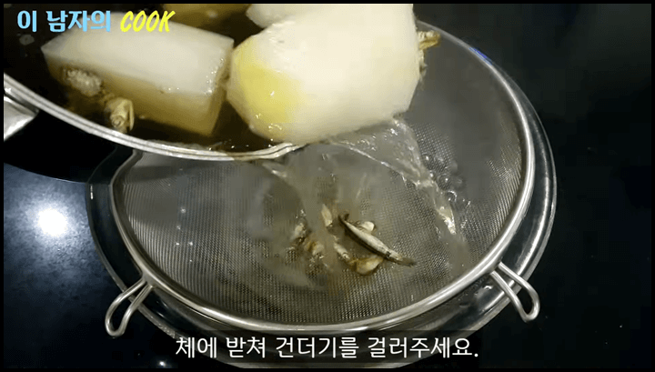 6) 30분간 끓인 후에는 체에 밭쳐 건더기를 걸러줍니다.