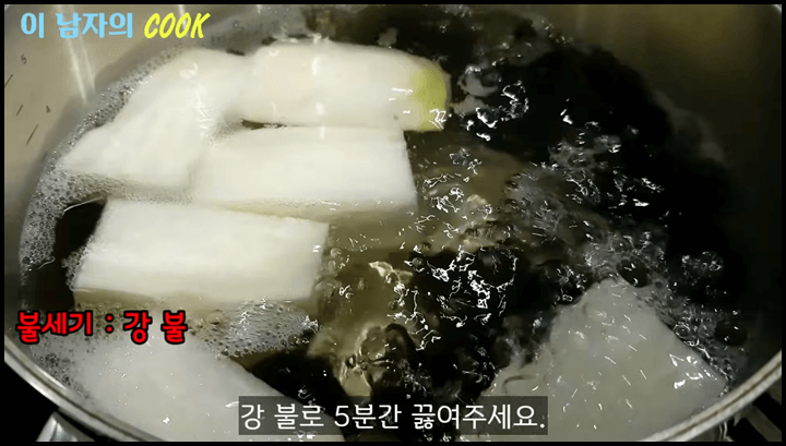 3) 센 불에서 약 5분 정도 끓여줍니다.