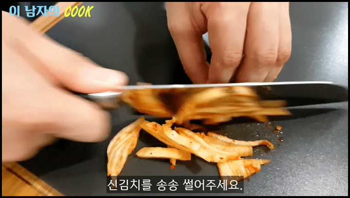 2) 신김치도 송송 썰어서 준비합니다.
