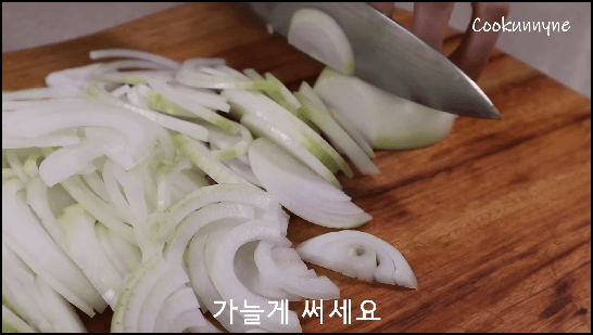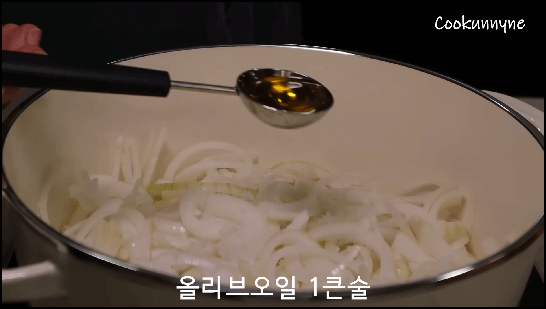 1) 양파 3개를 가늘게 채 썰어줍니다. 냄비에 모두 다 넣고 소금 3꼬집을 넣고 올리브오일 1큰술을 넣어 잘 섞어둡니다.