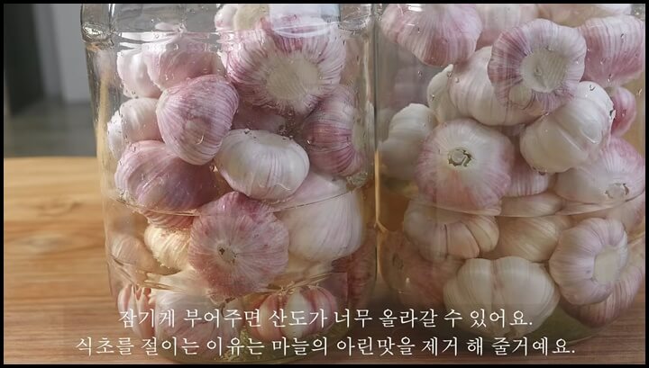 식초에 절여주는 이유는 마늘의 아린 맛을 제거해 주기 위함입니다.