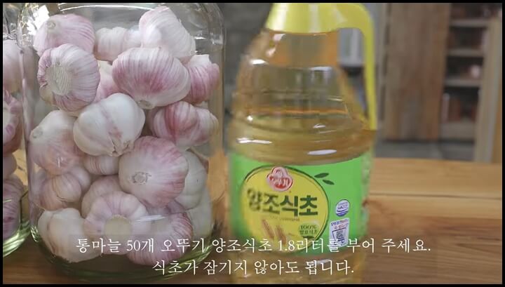 [출처 : 유튜브 마카롱여사, 마늘장아찌 담그는 방법, 마늘장아지 황금비율]