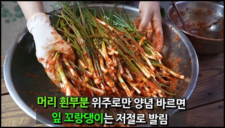 출처 : 유튜브 윤이련 50년 요리비결, 파김치 맛있게 담그는법, 파김치 황금레시피
