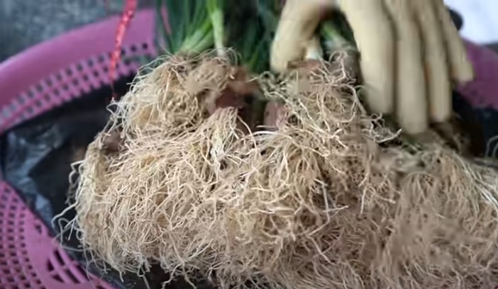 노지 쪽파는 짧고 통통한 편이고, 하우스에서 키운 쪽파는 가늘고 키가 커요. 쪽파의 뿌리를 잘라내는데, 뿌리는 버리지 말고 씻어서 말렸다가 육수 낼 때 사용하면 좋아요.