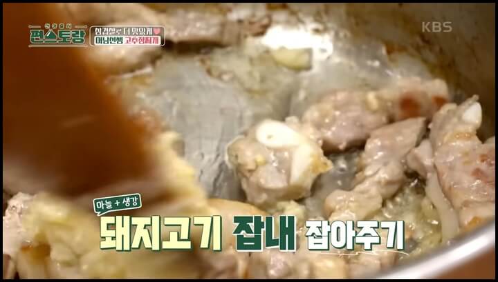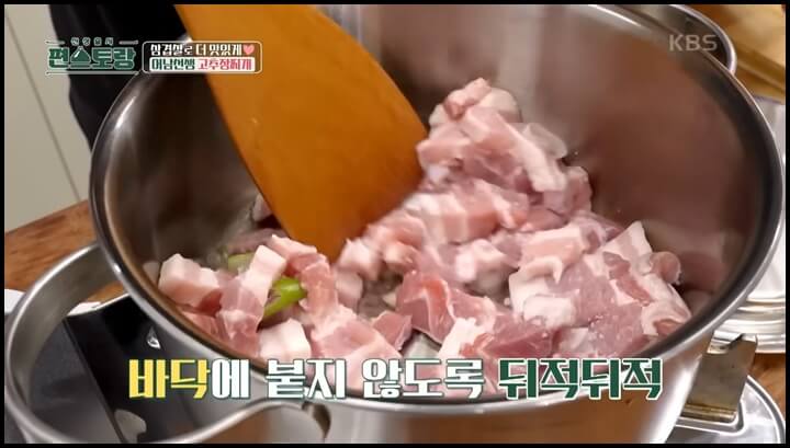 1. 편스토랑 류수영 고추장찌개 - 삼겹살 기름내기
