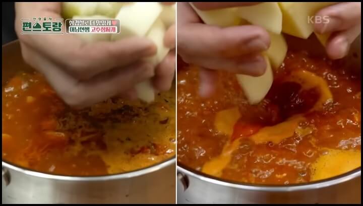 4. 편스토랑 류수영 고추장찌개 - 야채 넣고 끓이기